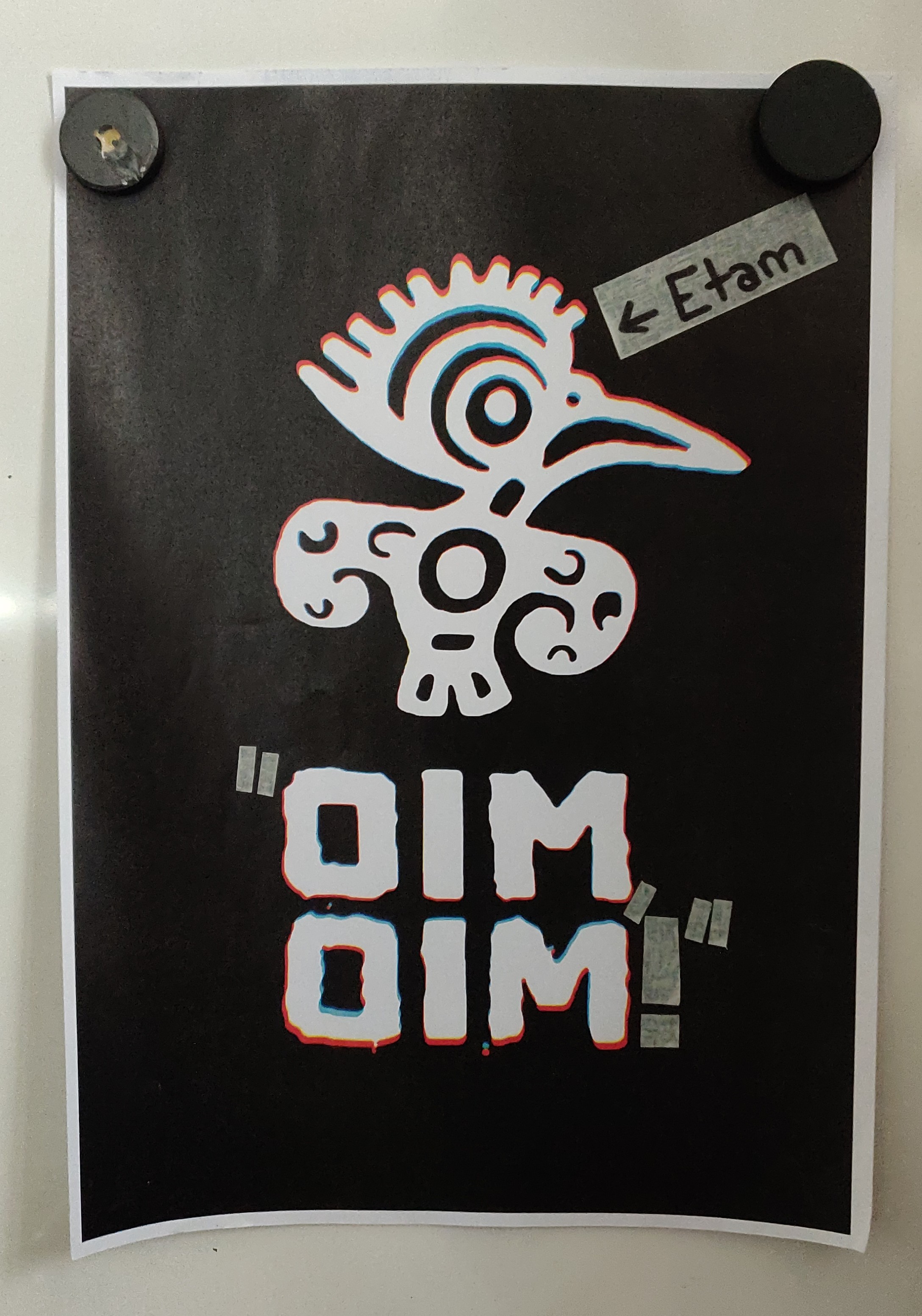 Etam war lange nur auf einem Bild an unserem Whiteboard zu sehen, aber schon von dort aus wachte er stets über unsere Mate-Vorräte. Mit einem lauten „OIM, OIM!“ lässt er uns wissen, dass es an der Zeit ist, den Kiosk aufzufüllen.